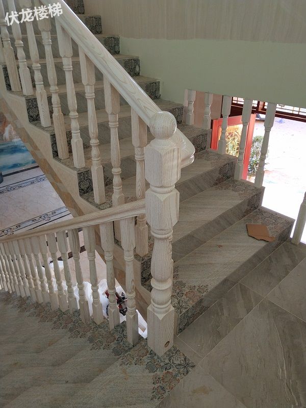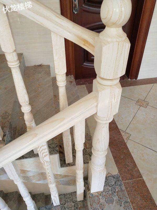 材质为:俄罗斯进口水曲柳-全实木楼梯扶手。